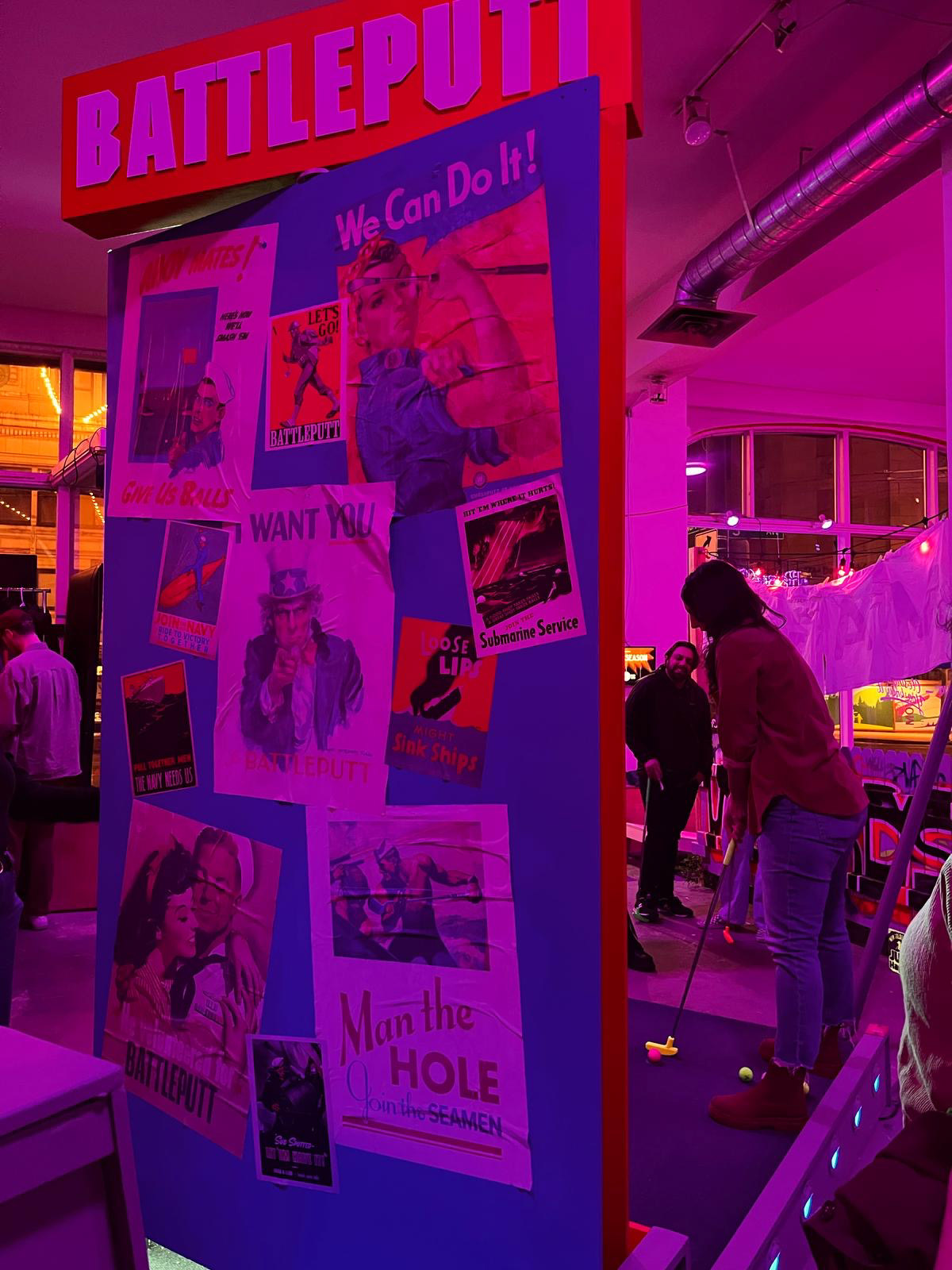 A Seattle Design Nerds project, BATTLEPUTT was a hole featured at the 2025 resurrection of Smashputt at Basecamp Studios. Based on the classic game of (nearly) the same name, BATTLEPUTT features a giant pegboard and even giant-sized sized version of the boats!