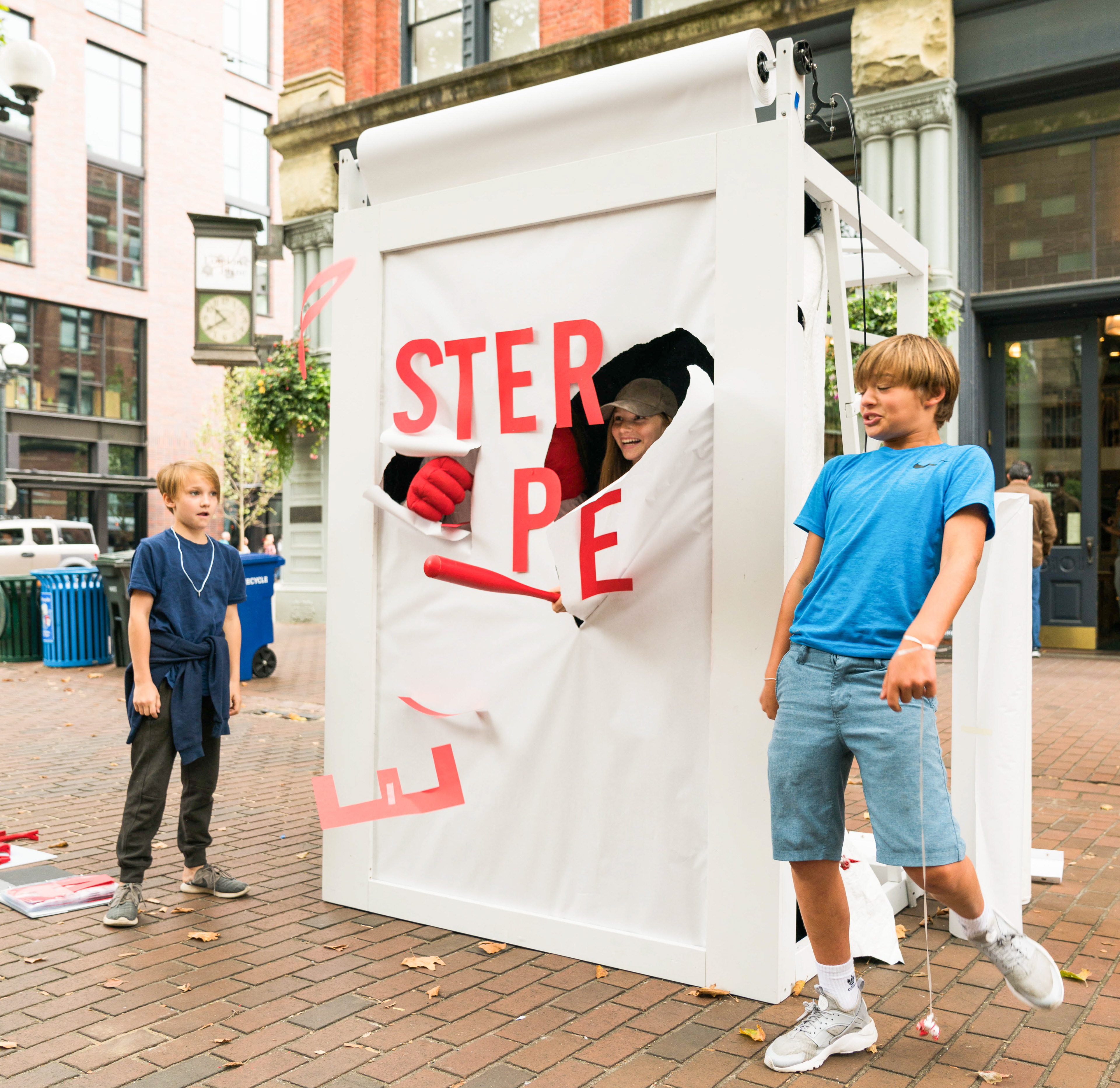 BREAKTHRU is a freestanding, reloadable paper wall where people can spell out their demons, confront oppressive structures and personal challenges, and tear them apart in a burst of cathartic energy