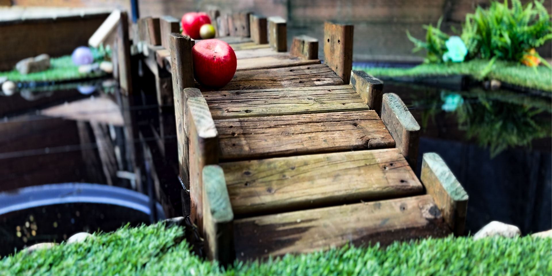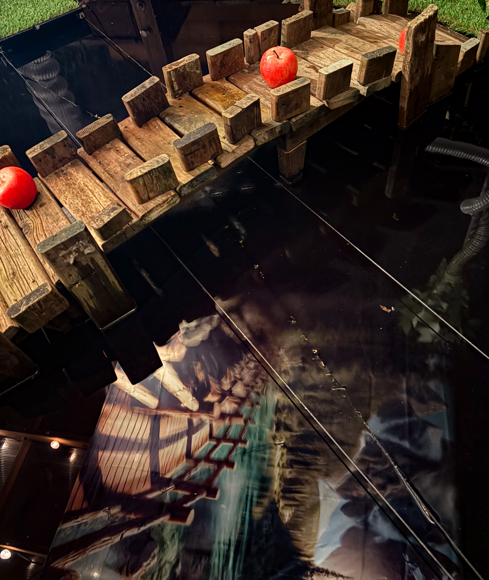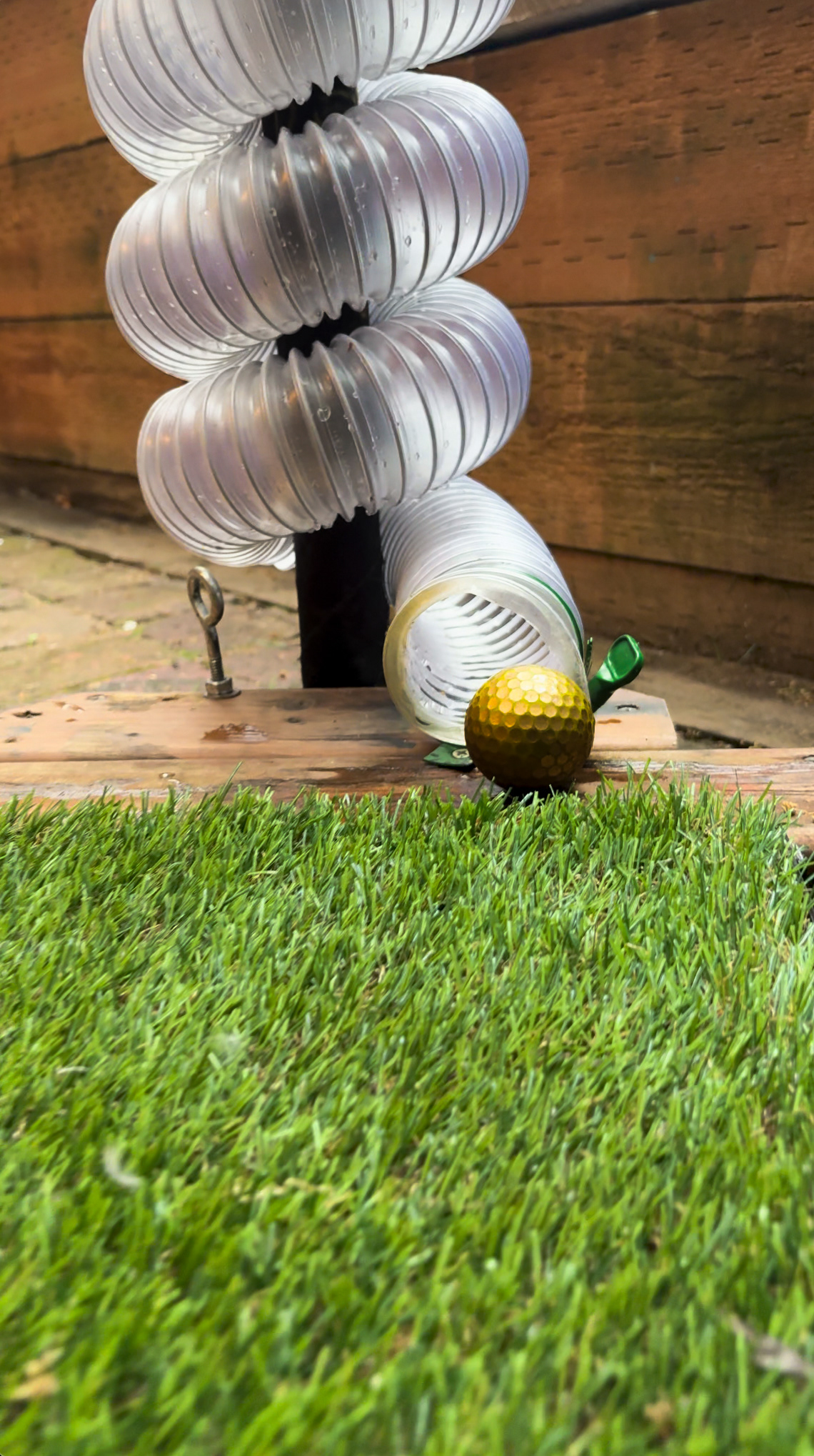 Themed around the "trip to grandmother's house, the installation features a pop-up mirror pool, multiple pathways to follow and a canopy top designed to drop the ball into one of 3 corners of the "green" to start the game.