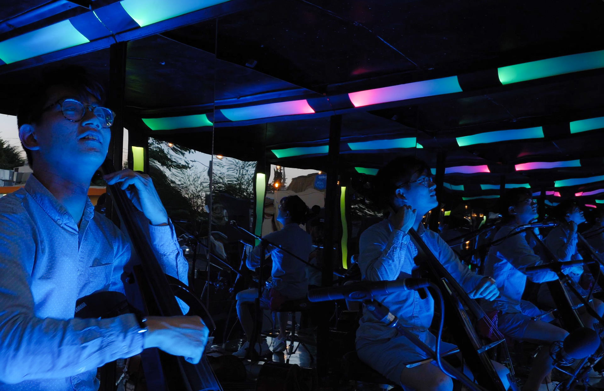 Design/build lead and custom lighting installation + performance by Madeline Jo.